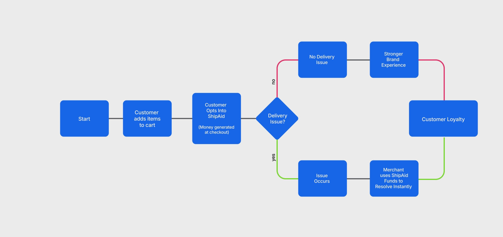 When a customer reaches checkout, they’re presented with the option to add SHIPAID Protection to their order. If an issue arises after purchase, like damage, loss, or delivery problems, the claim is handled through a merchant-controlled resolution process, allowing you to decide how to make it right. This fast, branded experience turns what could have been a negative moment into increased trust and long-term customer loyalty.